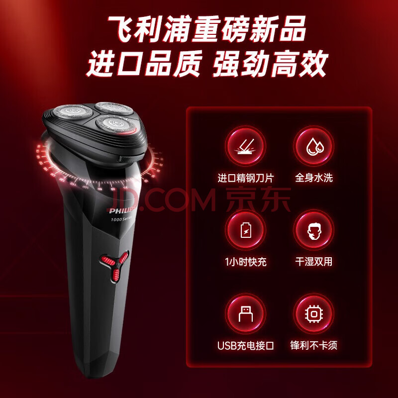 商品相册:飞利浦(PHILIPS)电动剃须刀 1小时快充 进口刀头 全身水洗【风驰切剃】旅行便携式刮胡须刀 1系快充款 S1113/02第