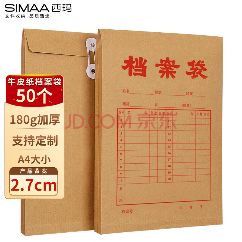 商品相册:西玛(SIMAA)50只A4牛皮纸档案袋180g加厚 2.7cm合同标书文件袋/资料袋/办公用品 19045第