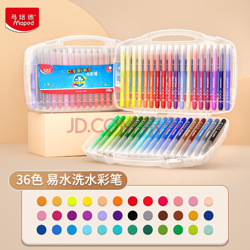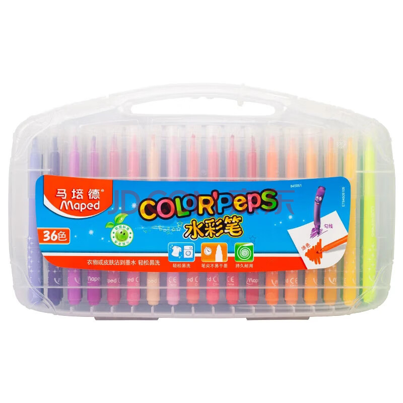 商品相册:马培德(Maped)可水洗水彩笔 幼儿小学生绘画彩色笔 初学彩绘涂鸦画笔 845051CH【36色/塑盒装】儿童美育礼物第