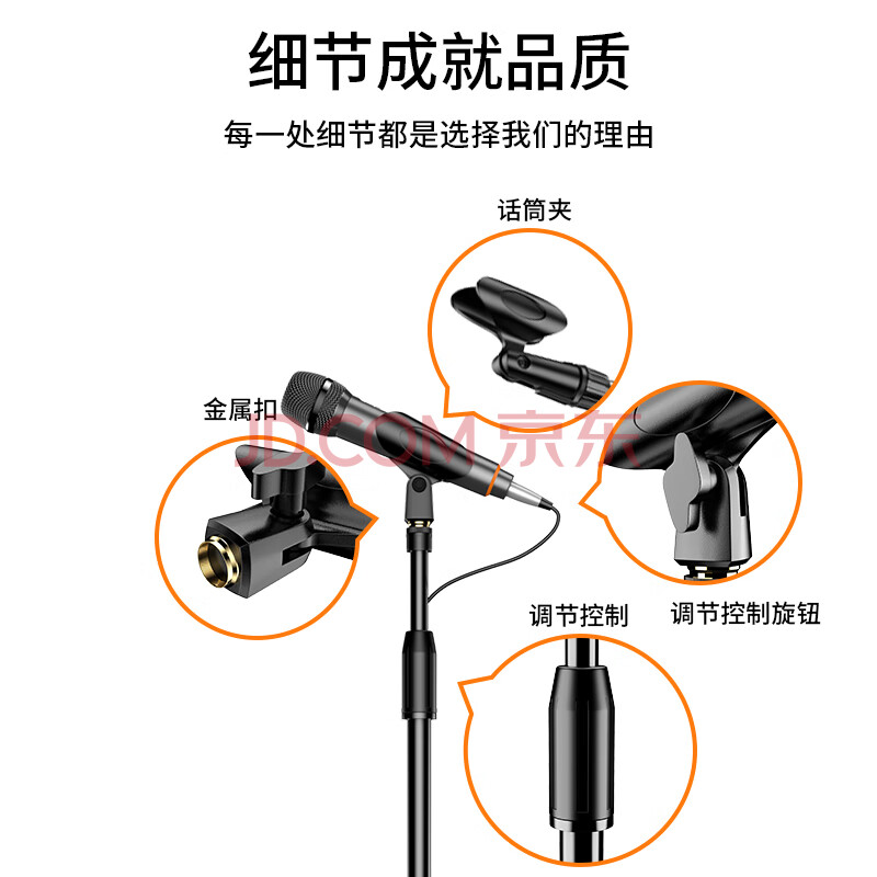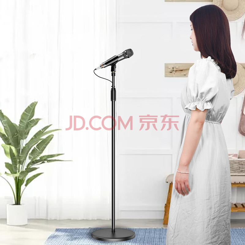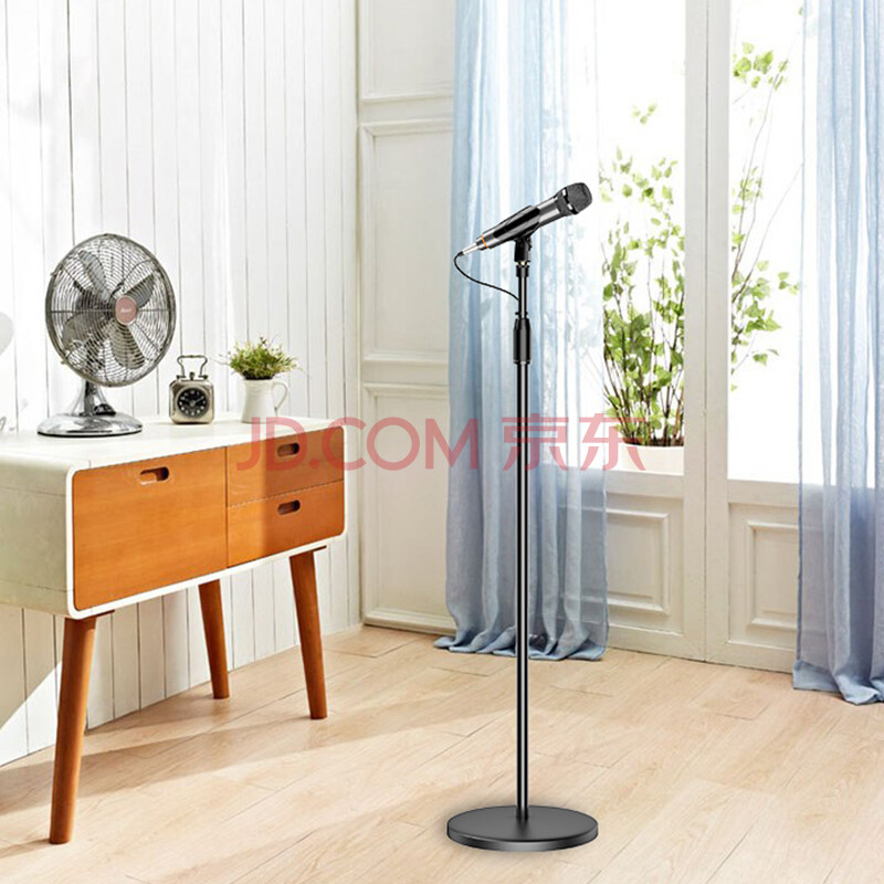 商品相册:索爱(soaiy)M8麦克风话筒支架 金属铁盘圆底座手机直播支架演唱可伸缩易于收纳落地有线无线话筒通用支架第