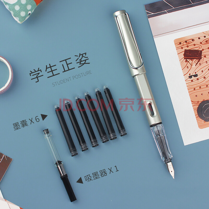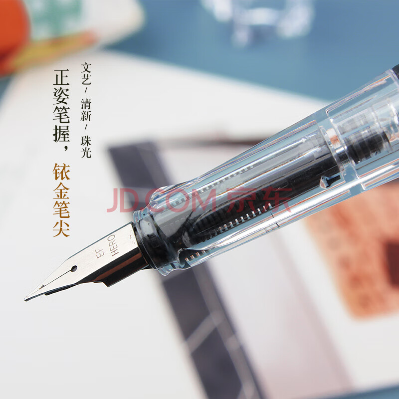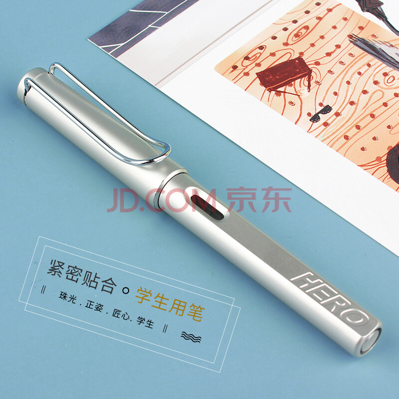 商品相册:英雄(HERO) 钢笔 359B学生办公练字正姿铱金钢笔(附加6支墨囊) EF尖 珠光银第