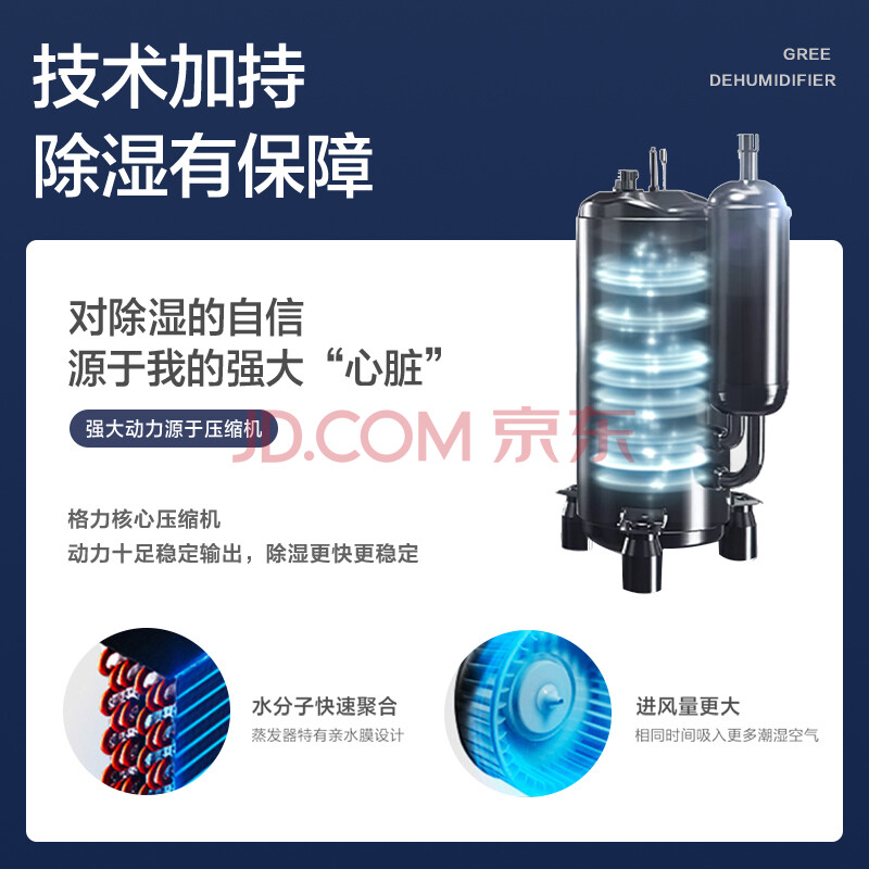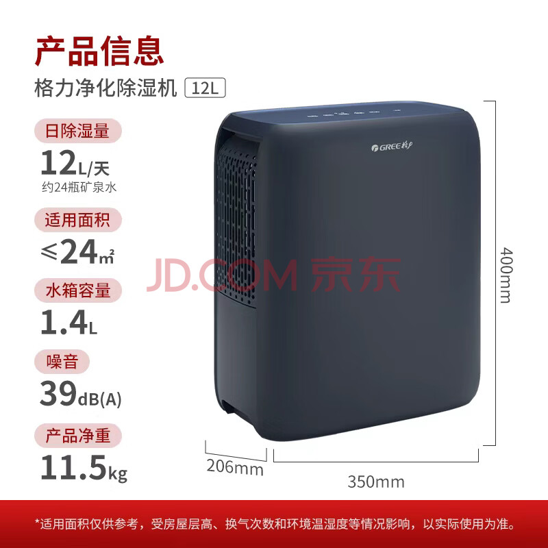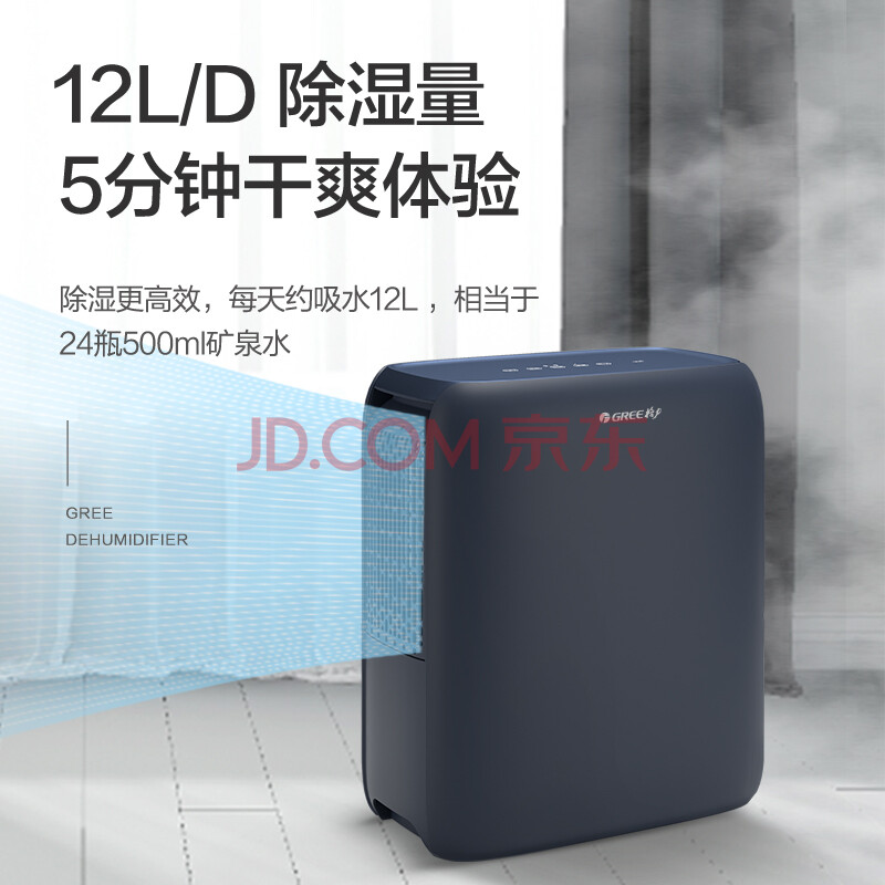 商品相册:格力(GREE)【轻音小巧+空气净化】除湿机抽湿机家用12升/天单间≤24㎡雨季回南除潮防霉负离子净化DH12ENA1A第
