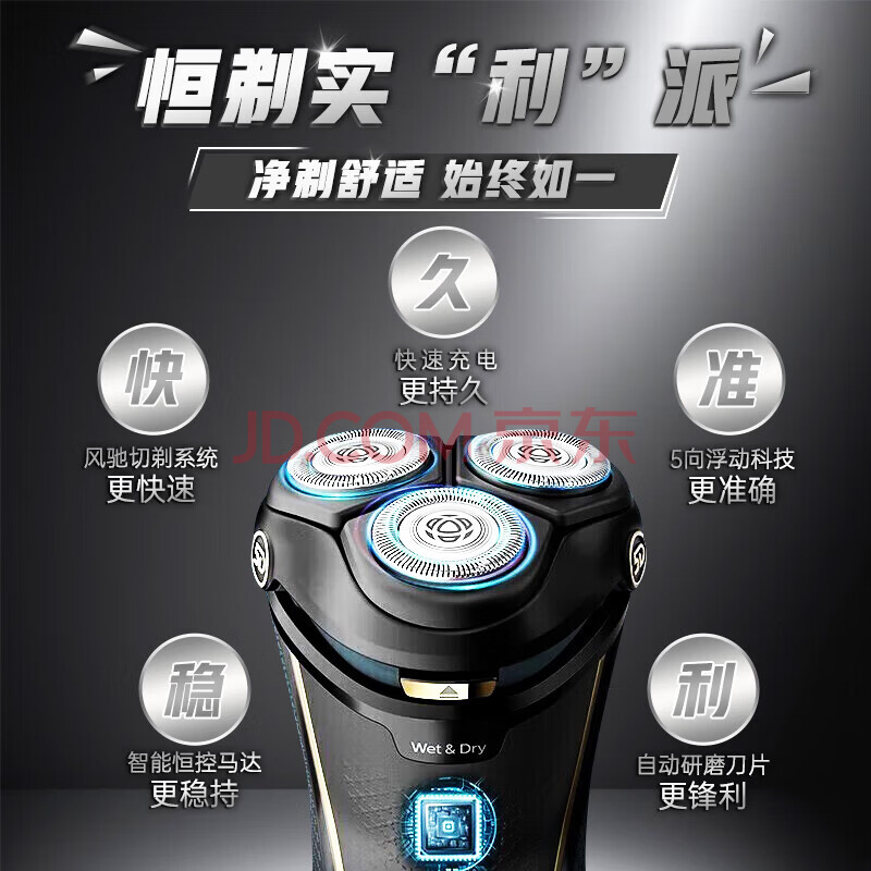 商品相册:飞利浦(PHILIPS)电动剃须刀【整机进口】高效净剃 干湿双剃 快充剃胡须刀 全身水洗刮胡刀 送男友送长辈 S4313/13第