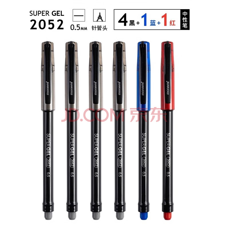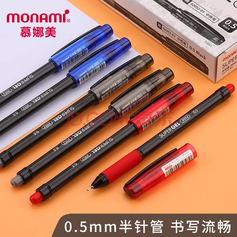 商品相册:【开学必备】慕那美(monami)半针管中性笔套装水笔签字笔 0.5mm黑红蓝02052-6支装第