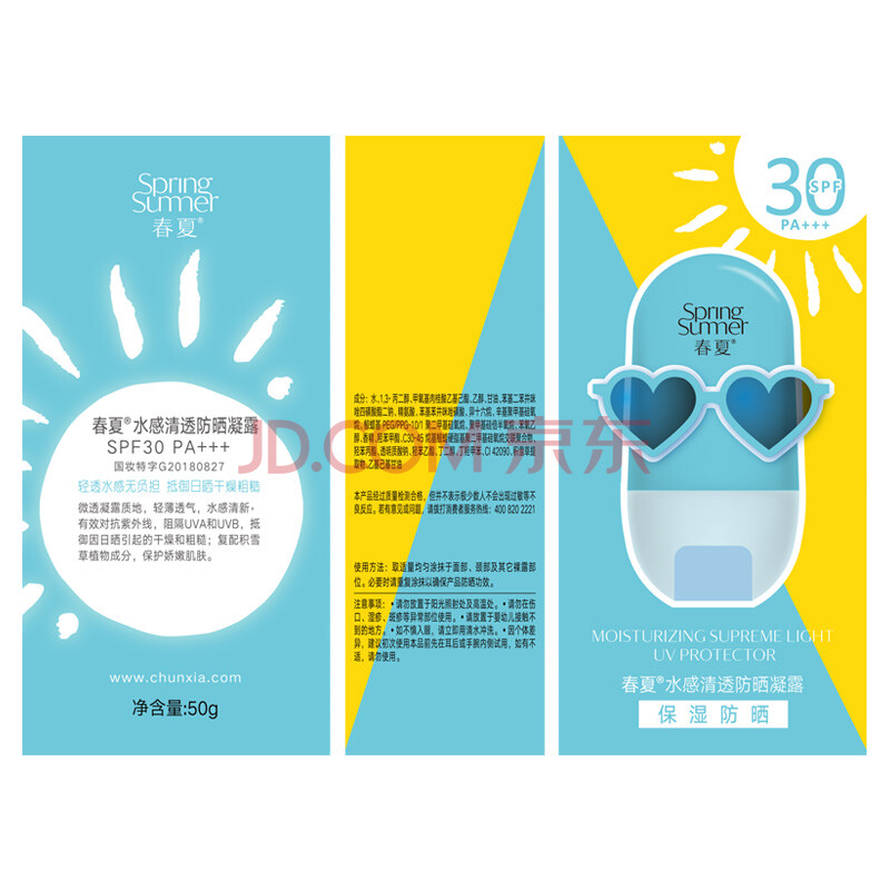 商品相册:春夏水感清透防晒凝露SPF30PA+++50g(不泛白不油腻清爽隔离乳)第