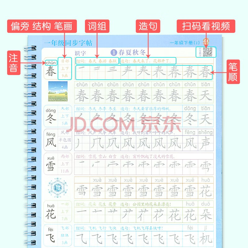 商品相册:绍泽文化 小学语文同步凹槽练字帖 儿童笔顺控笔练字本 一年级下册3本装第