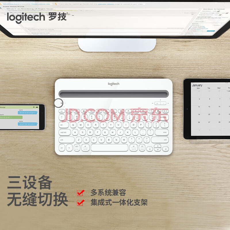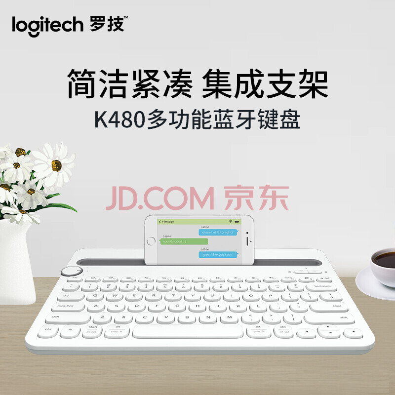 商品相册:罗技(Logitech)K480 键盘 多功能蓝牙键盘(白色) 办公键盘 女性 便携 超薄键盘 笔记本键盘第