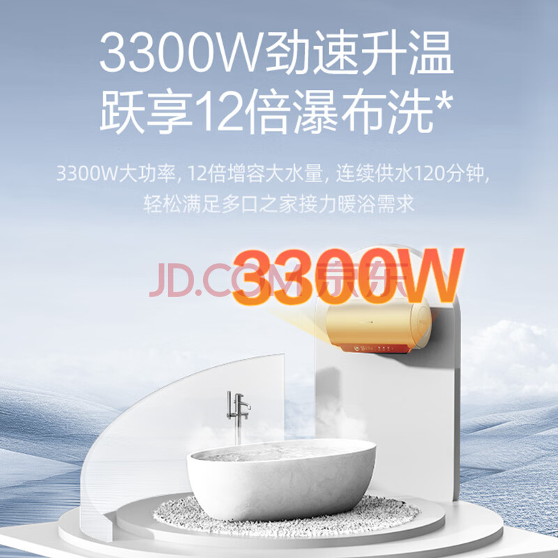 商品相册:万和【恒净Q8】50升内胆免清洗3300W速热一级能效出水断电终身免换镁棒电热水器第