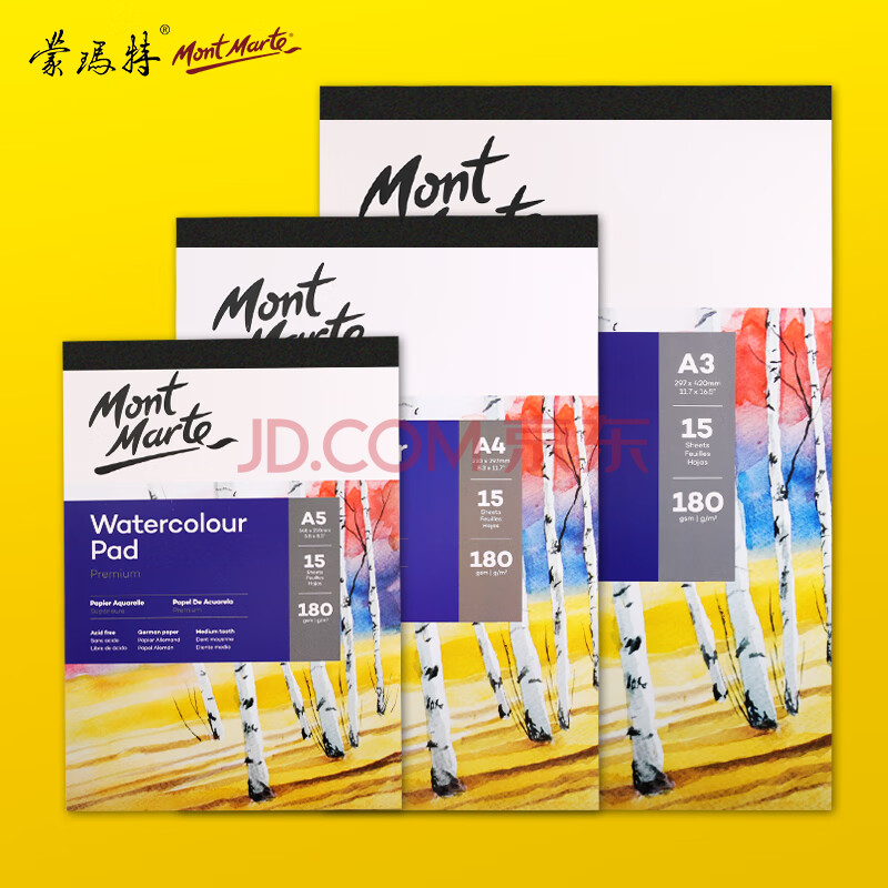 商品相册:【全网低价】蒙玛特 a5水彩本180g 绘画本美术儿童加厚绘画纸水彩纸 学生颜料套装彩铅本空白画画纸MSB0064美术写生第
