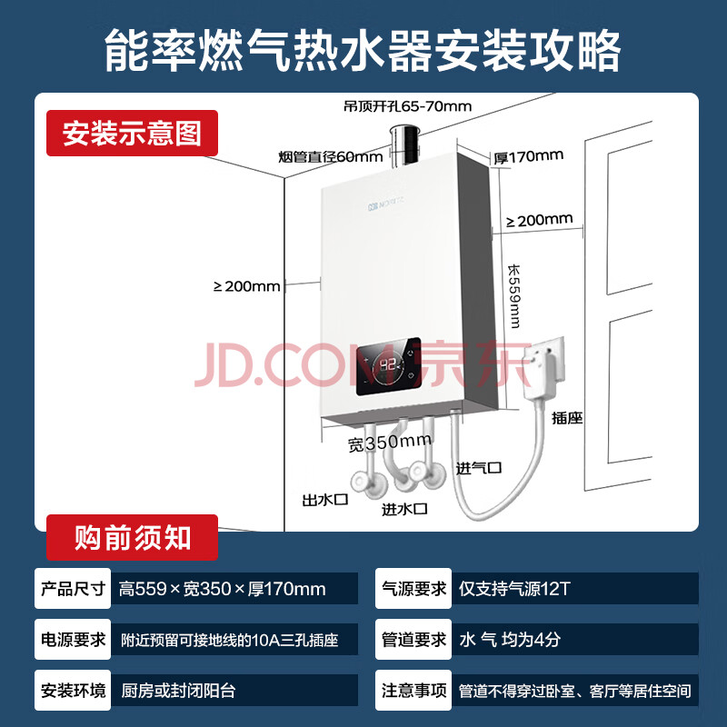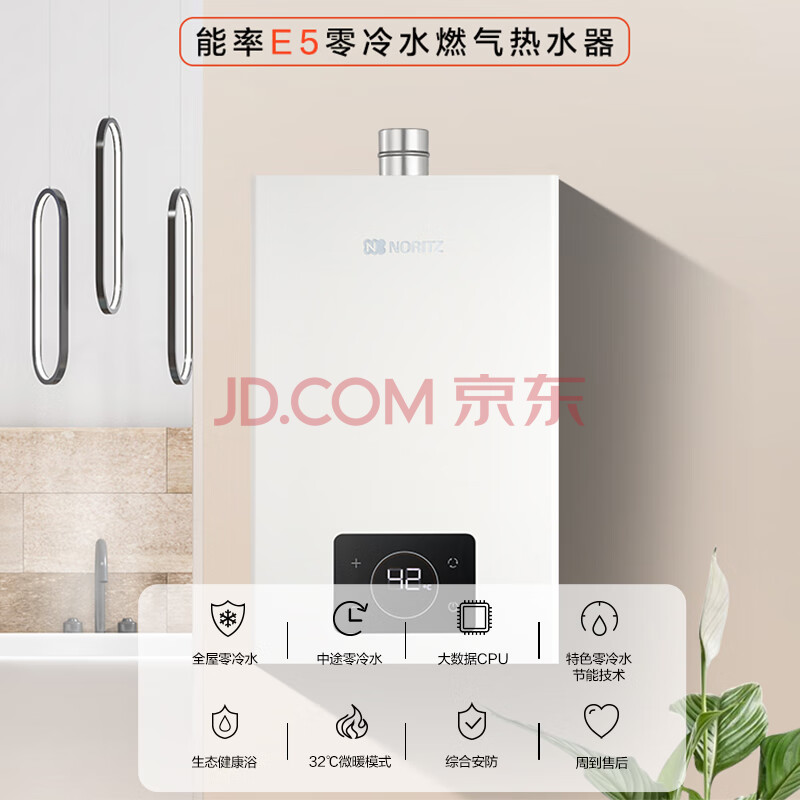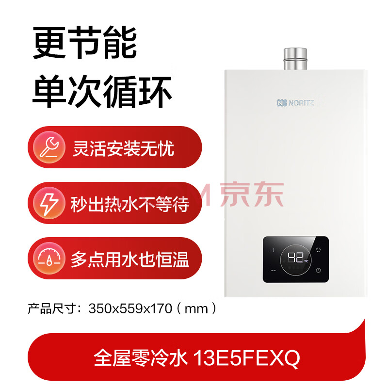 商品相册:能率(NORITZ)燃气热水器13升 全屋零冷水 两管可安装 恒温 下置风机 上门安装 13E5FEXQ天然气第1张/共8