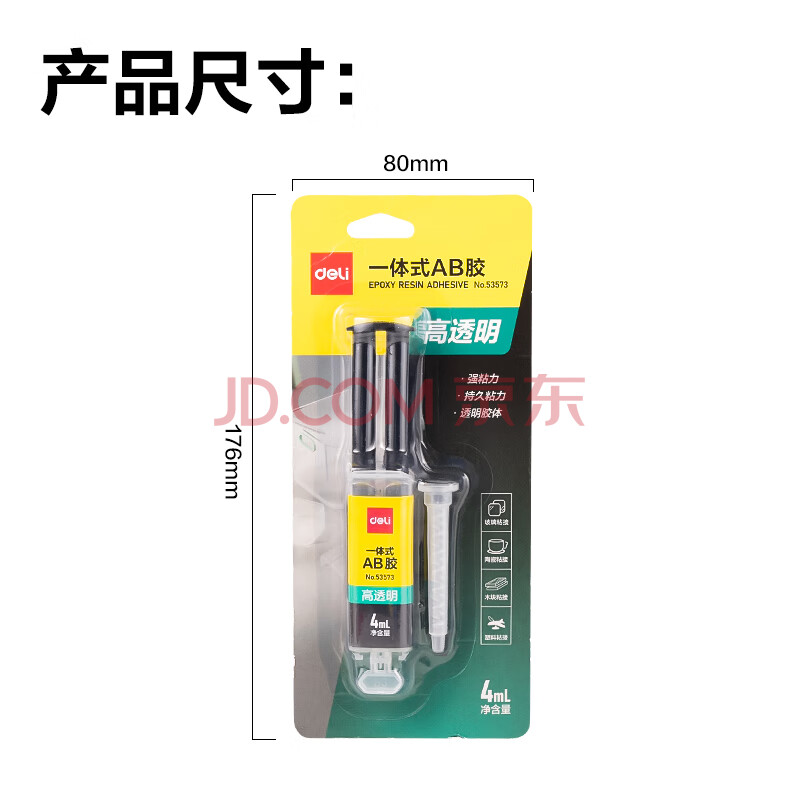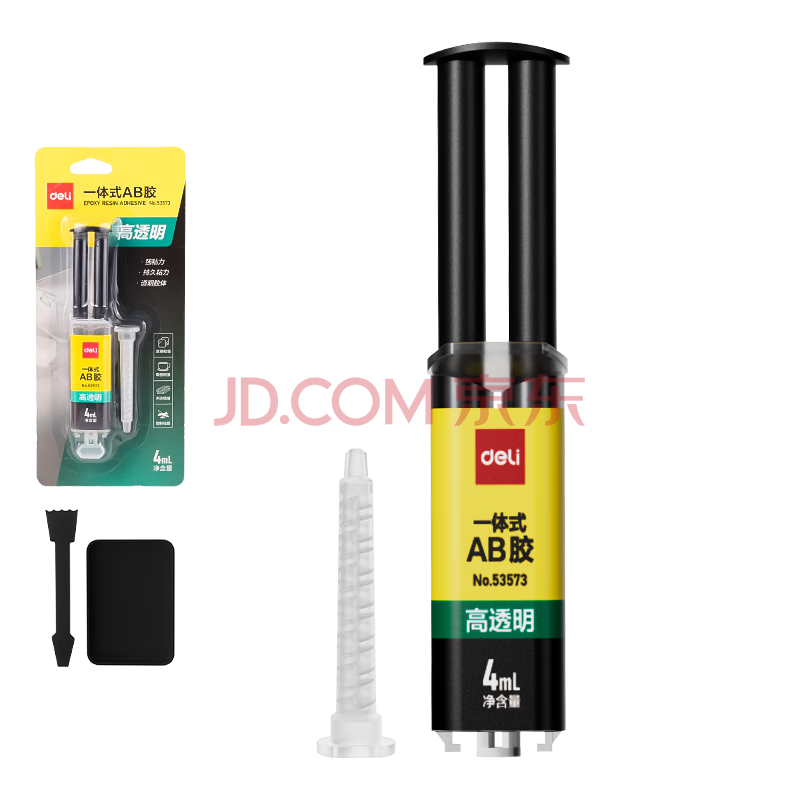 商品相册:得力4ml针管型AB胶 一体式强力胶水 透明无痕胶 万能胶粘剂 可粘玻璃陶瓷金属塑料 办公用品 53573第