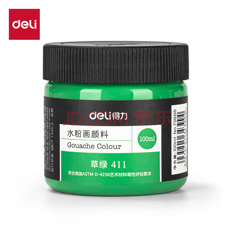 商品相册:得力(deli)水粉颜料草绿100ml大容量罐装绘画彩绘水粉画成人学生儿童艺考初学者73888可水洗手搓颜料第