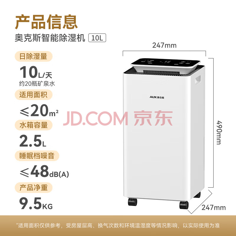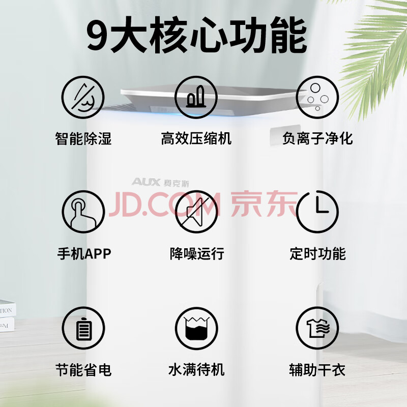 商品相册:奥克斯(AUX)除湿机/抽湿机 除湿量10升/天 家用轻音吸湿器卧室客厅干燥机智能互联KDY-01WS第1张/共9