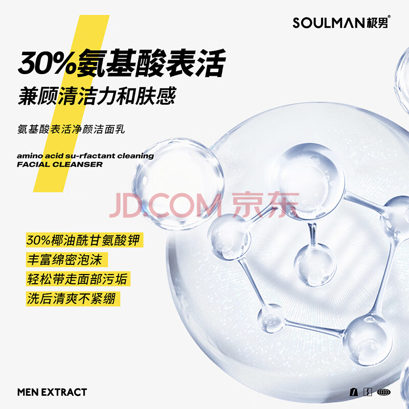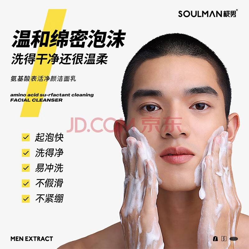 商品相册:极男氨基酸表活净颜洁面乳120ml 温和不刺激深层清控油男士洗面奶第