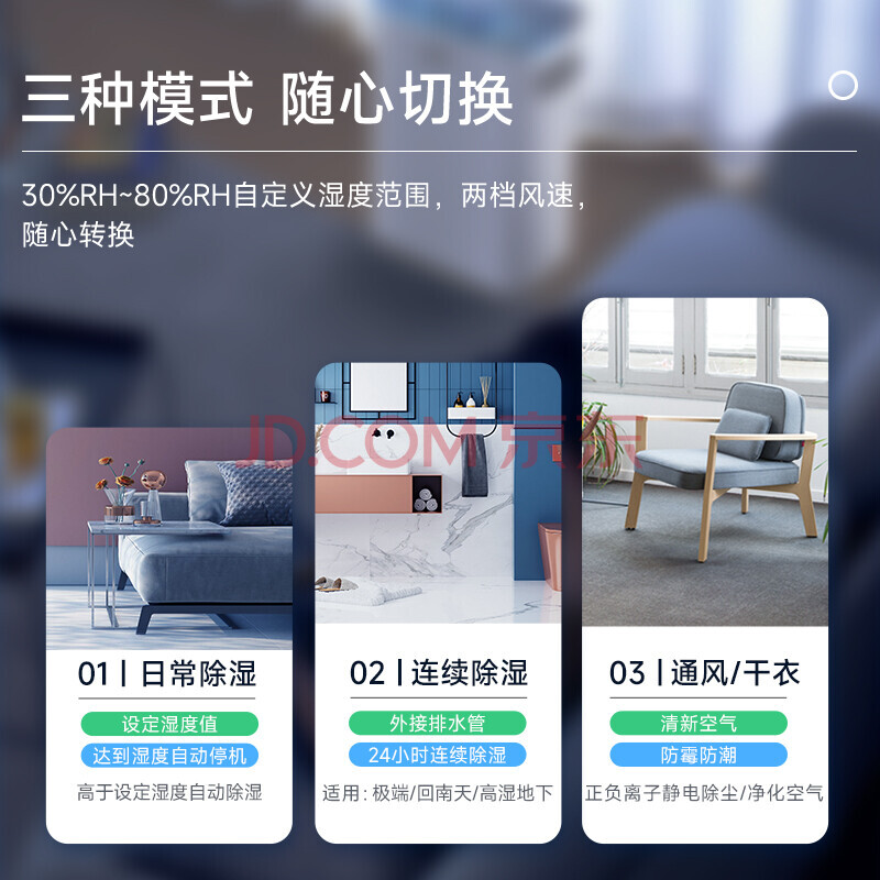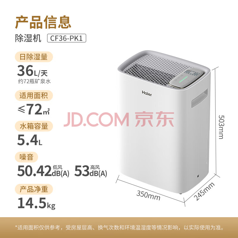 商品相册:海尔(Haier)除湿机/抽湿机 京东小家智能生态 除湿量36升/天 家用地下室别墅工业除湿机app智控回南天CF36-PK1第