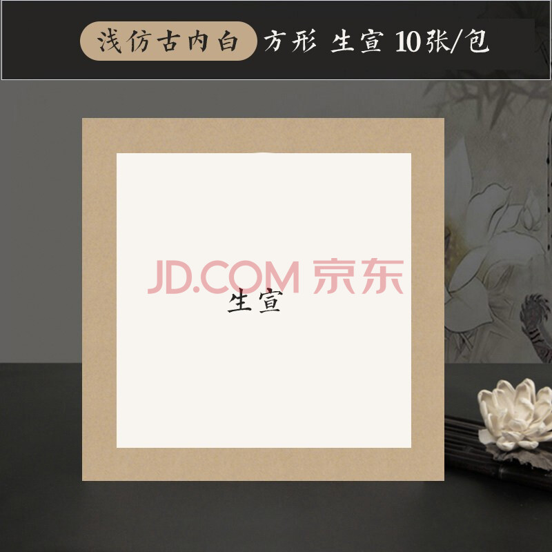 商品相册:一海堂 文化 卡纸 宣纸 文房四宝国画书法绘画装框用硬卡方形镜片纸 方形外浅仿古内白-生宣 33cm*10张第