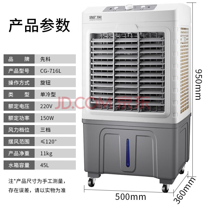 商品相册:先科 (SAST)冷风扇/空调扇/水冷风机/水冷空调扇/交流定频/家用商用制冷风机/车间工业冷风扇CG-716L第1张/共9