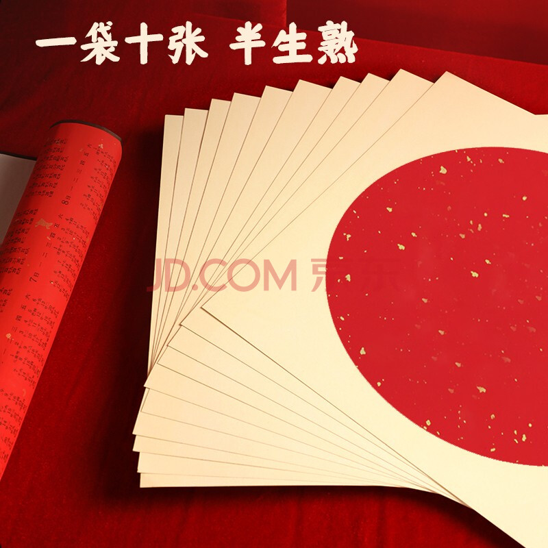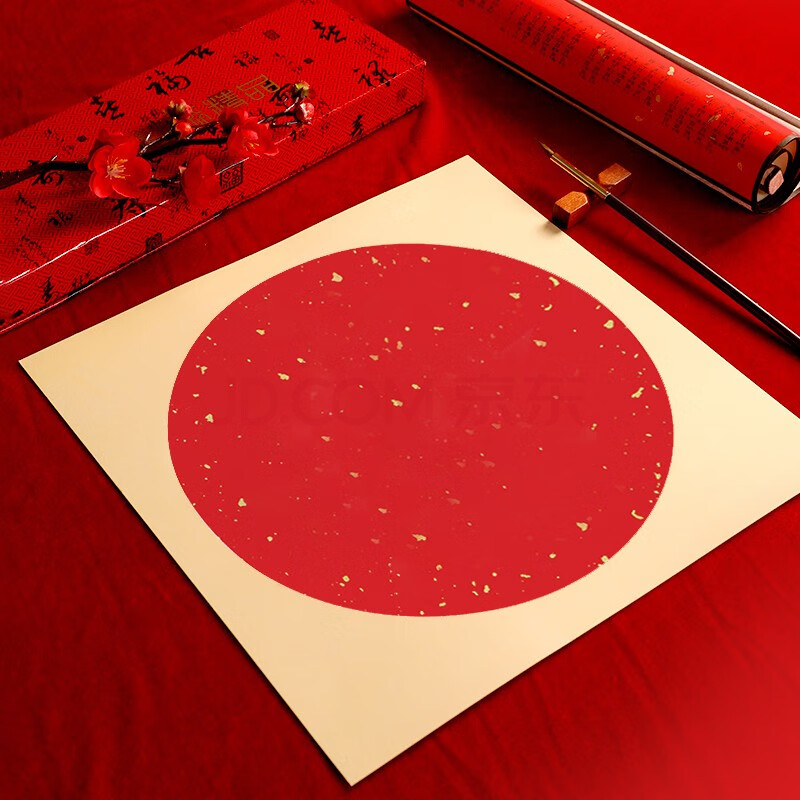 商品相册:一海堂 文化 宣纸 卡纸文房四宝国画书法绘画硬卡万年红方形镜片纸 外仿古圆内万年红洒金-半生熟 33*10张第