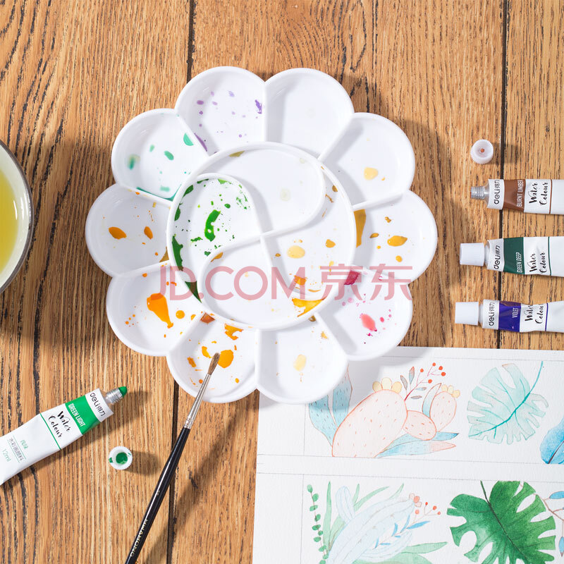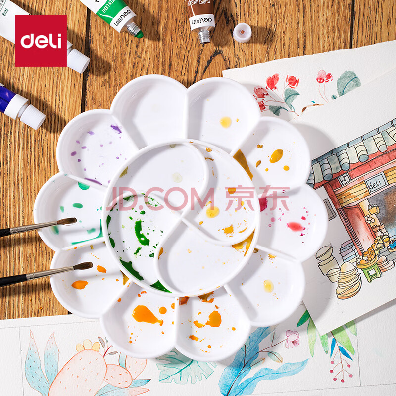 商品相册:得力(deli)优质14格塑料梅花型大号水粉颜料调色盘/调色盒/调色板/调色碟女孩儿童第