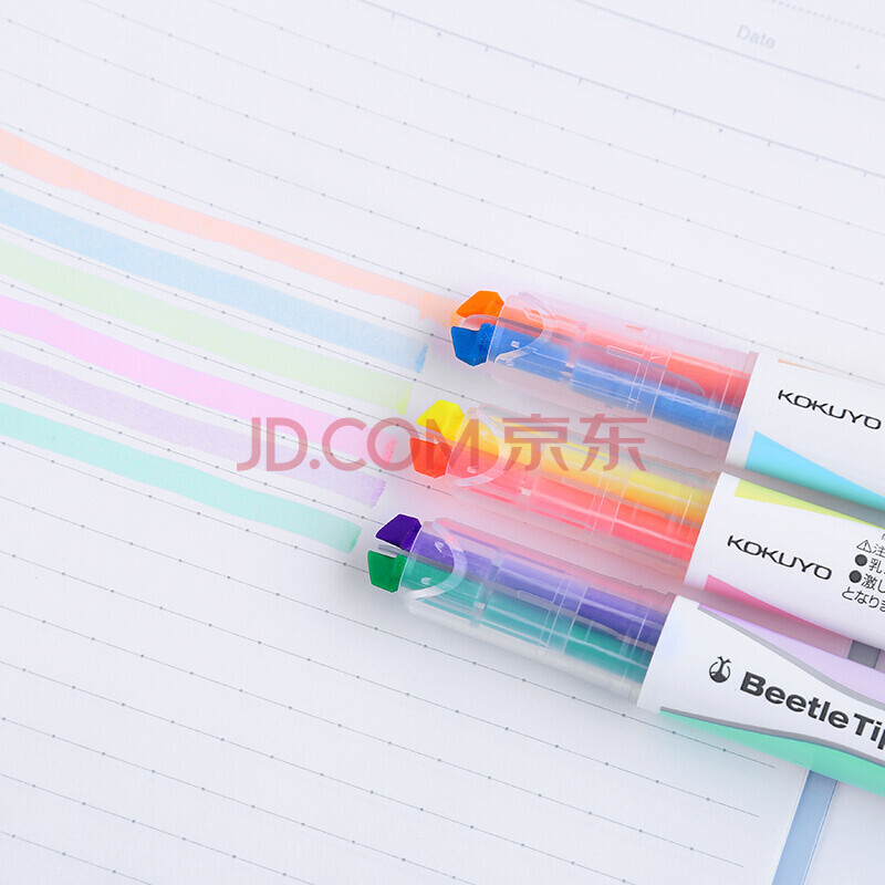 商品相册:国誉(KOKUYO)双色荧光笔Beetle Tip甲壳虫学生用考试复习重点标记笔 浅绿/浅紫1支 PM-L313-2-1P第