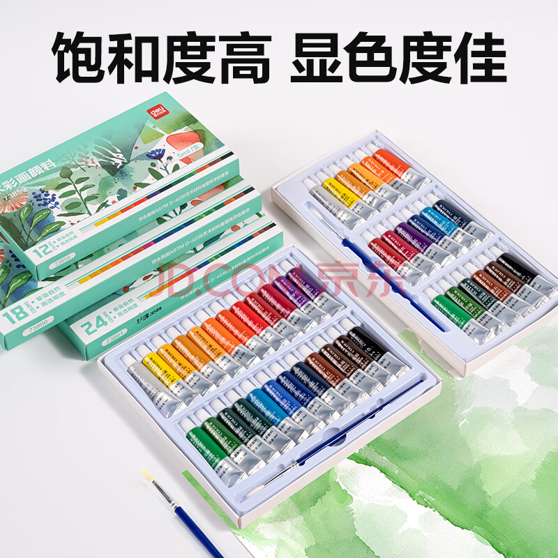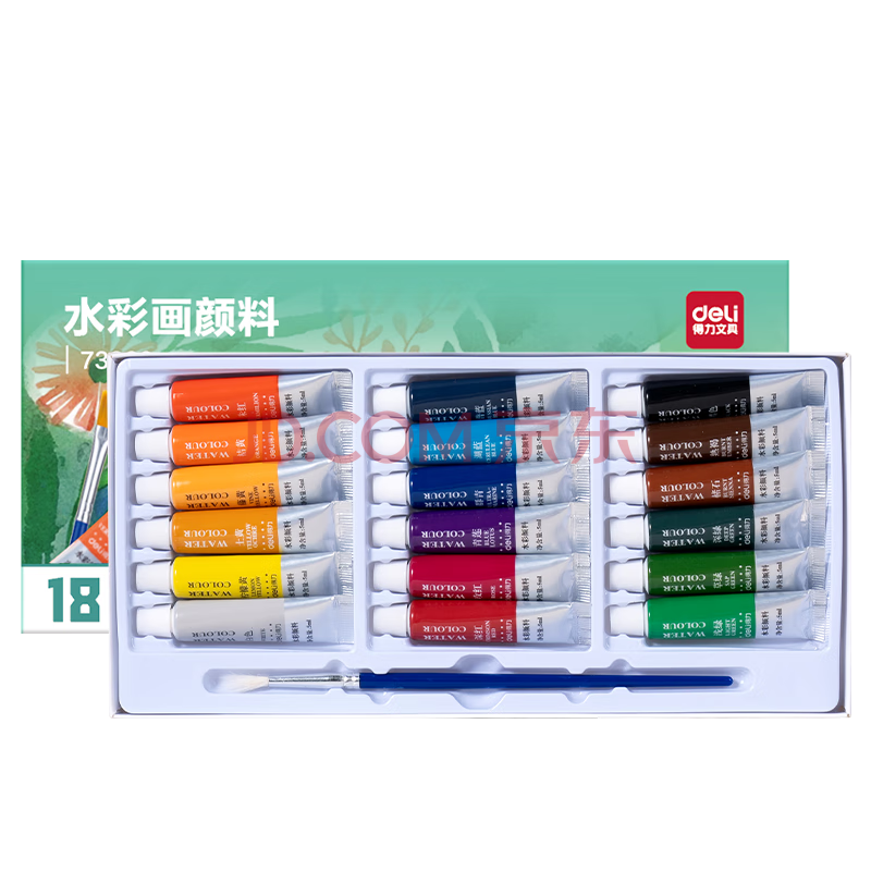 商品相册:得力(deli)18色5ml水彩颜料套装美术画画美术专用便携学生儿童入门级绘画彩绘套装色彩文具出游73860第