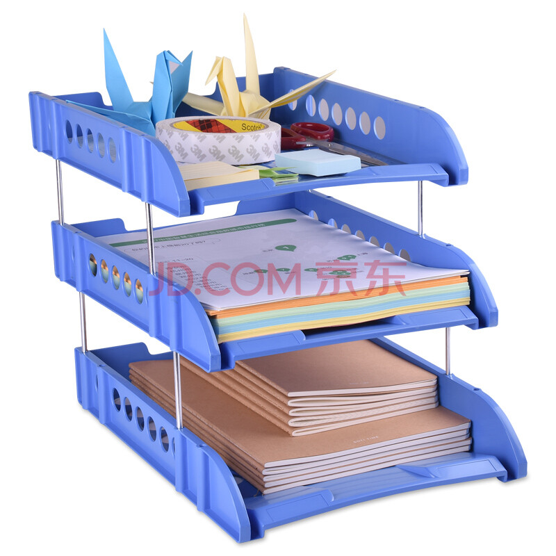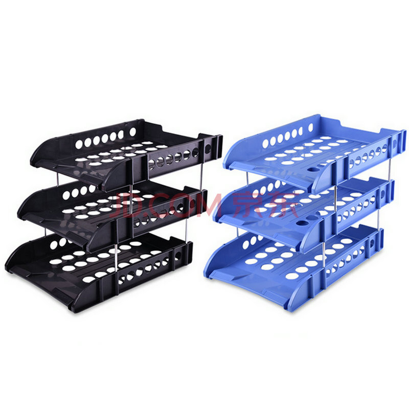 商品相册:浩立信(LISON)三层文件盘 黑色 办公桌面用品塑料文件框 文件夹收纳盒资料架第
