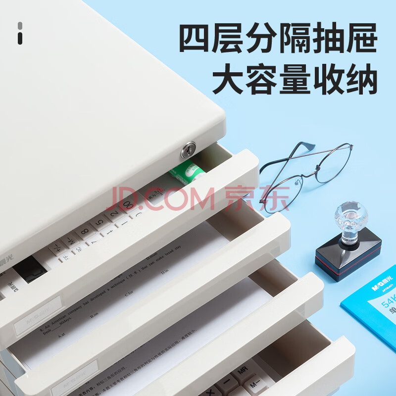 商品相册:晨光(M&G)文具 4层桌面文件柜 抽屉式拉手A4资料收纳柜 带索引标签 办公用品 灰色单个装ADM95297第