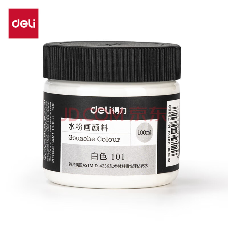 商品相册:得力(deli)水粉颜料白色100ml大容量瓶装绘画彩绘水粉画成人学生儿童艺考初学者可水洗手搓颜料第