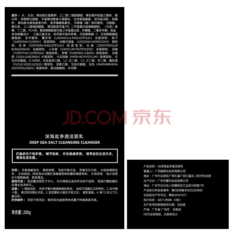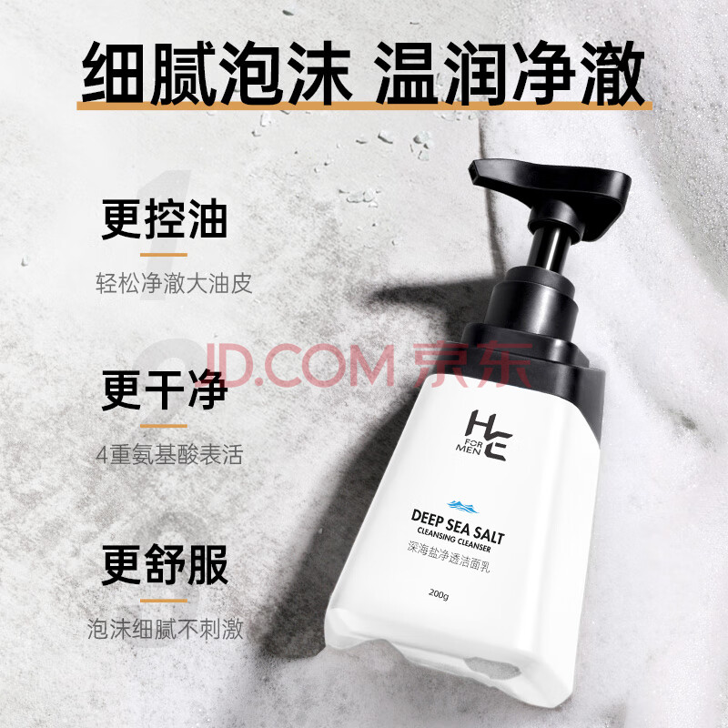 商品相册:赫恩(H&E)男士海盐净透控油洗面奶男200g氨基酸洁面乳第