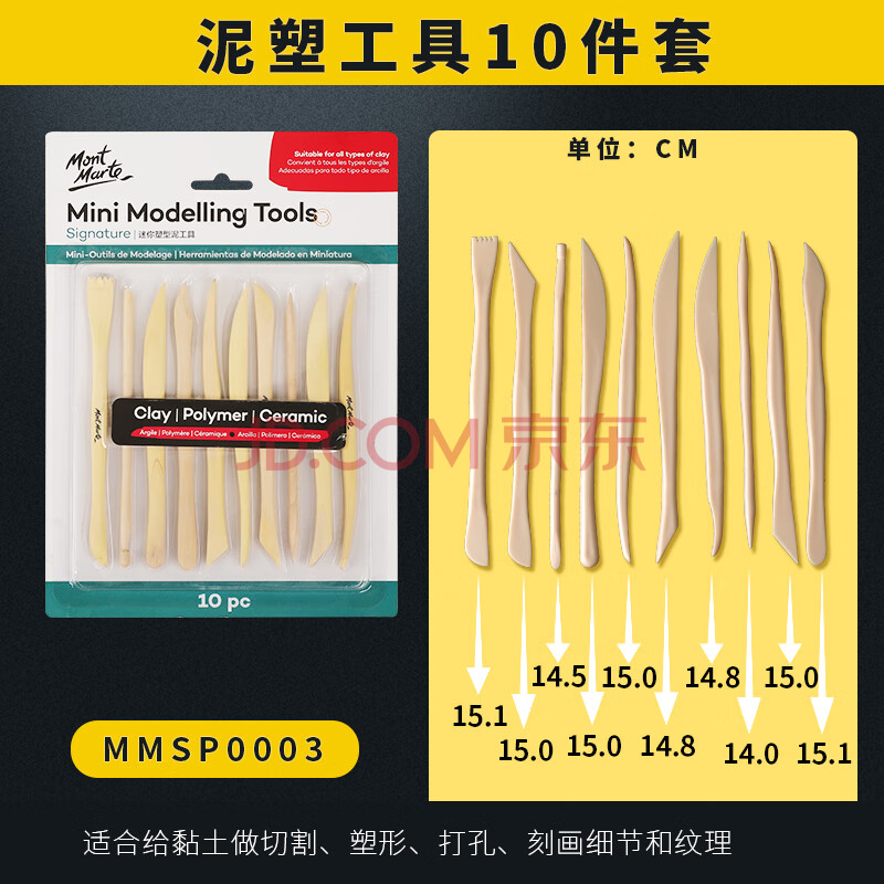 商品相册:蒙玛特(Mont Marte)陶泥工具10支装 软陶泥塑雕刻刀精雕粘土陶艺刀套装 木泥塑刀软泥diy陶艺工具MMSP0003美术写生第