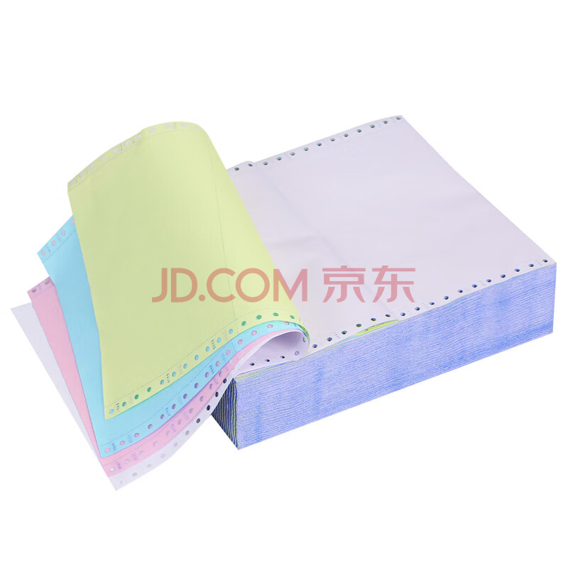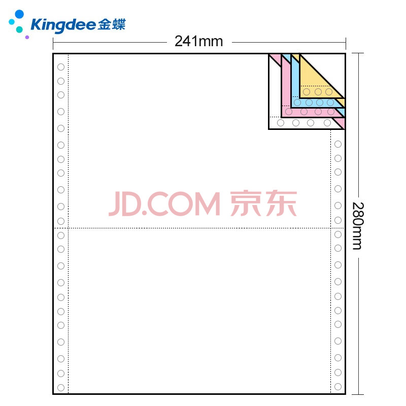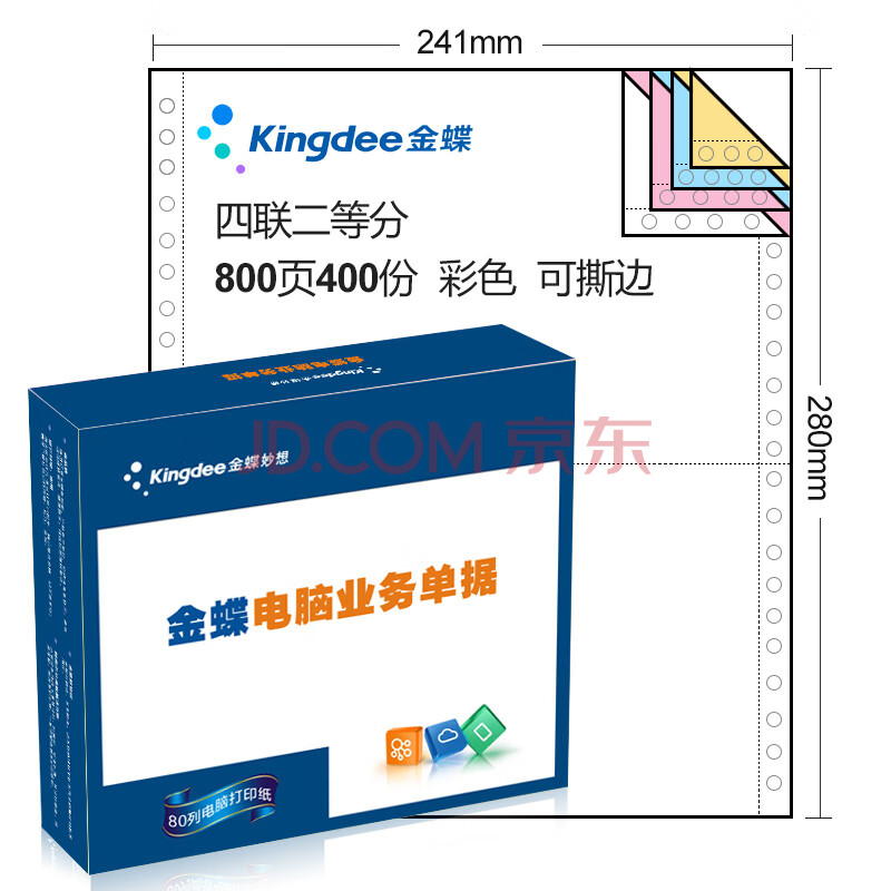商品相册:金蝶 kingdee 四联二等分撕边电脑打印纸 彩色针式打印纸(241-4-1/2S 色序:白红蓝黄 800页/箱)第