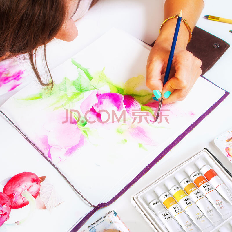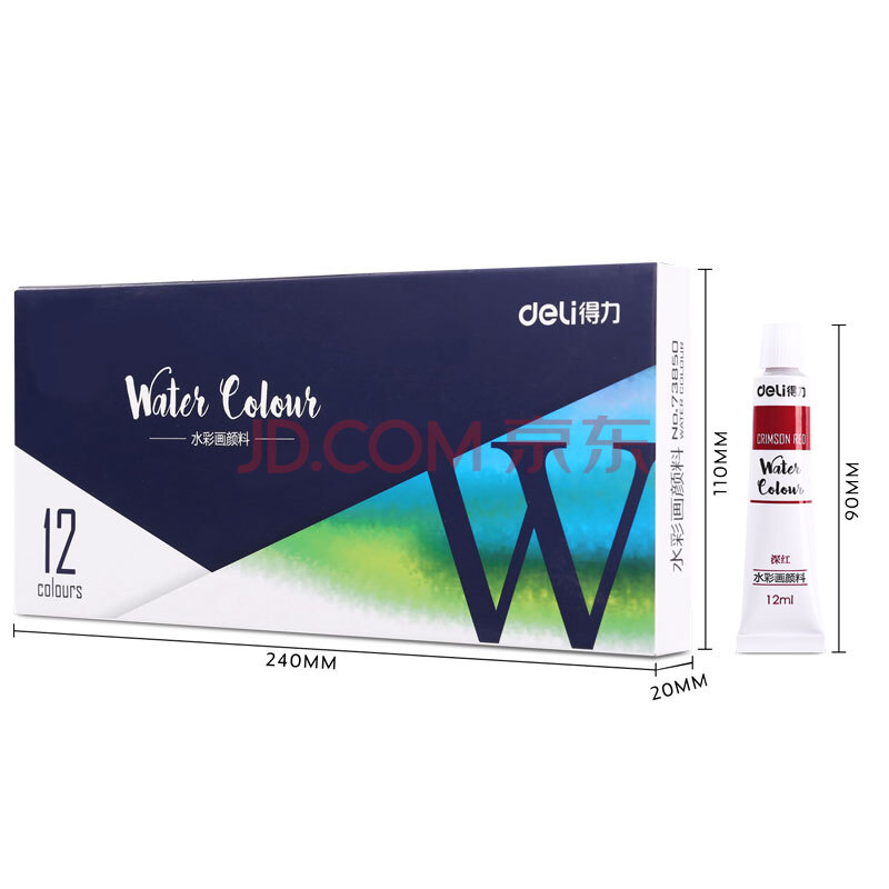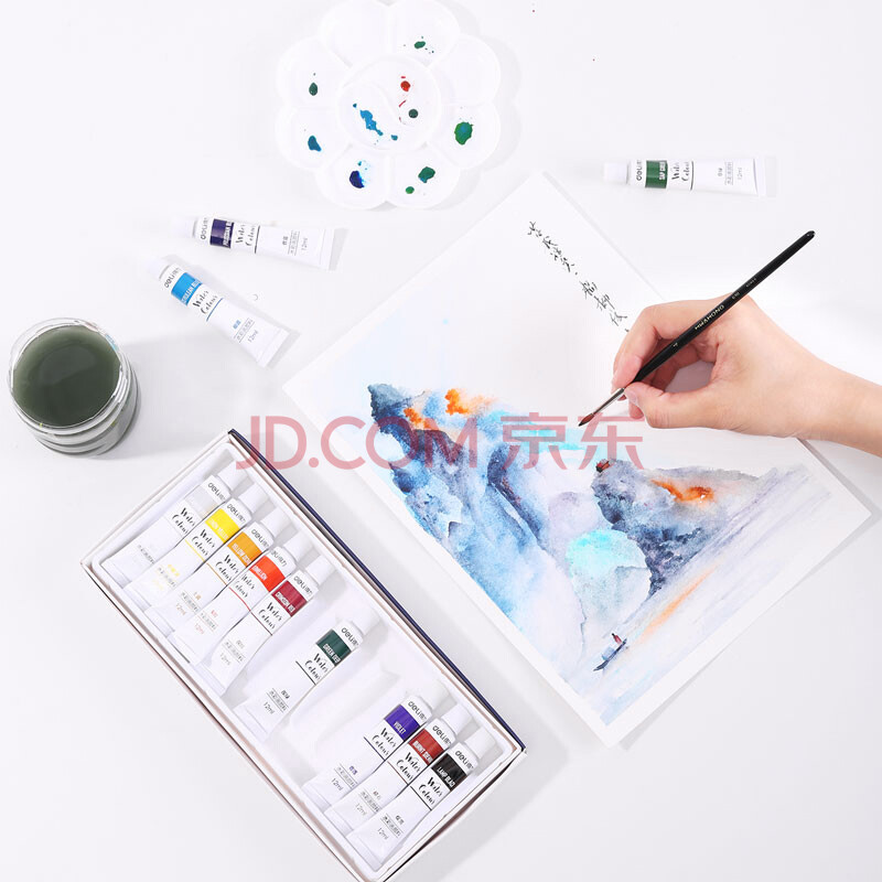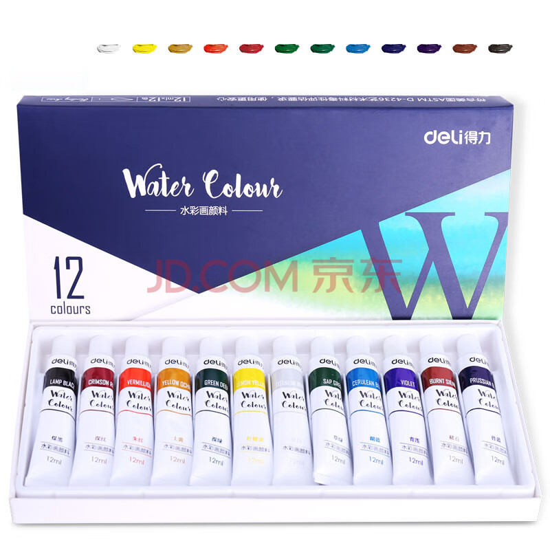 商品相册:得力(deli)水彩颜料12色12ml大容量画画美术专用便携专业级学生儿童绘画彩绘套装便携73850速写第