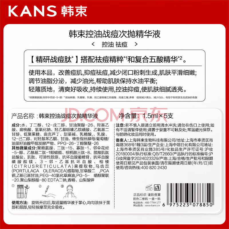 商品相册:韩束战痘棒次抛精华液1.5ml*5支学生控油祛痘男女细毛孔试用装派样第