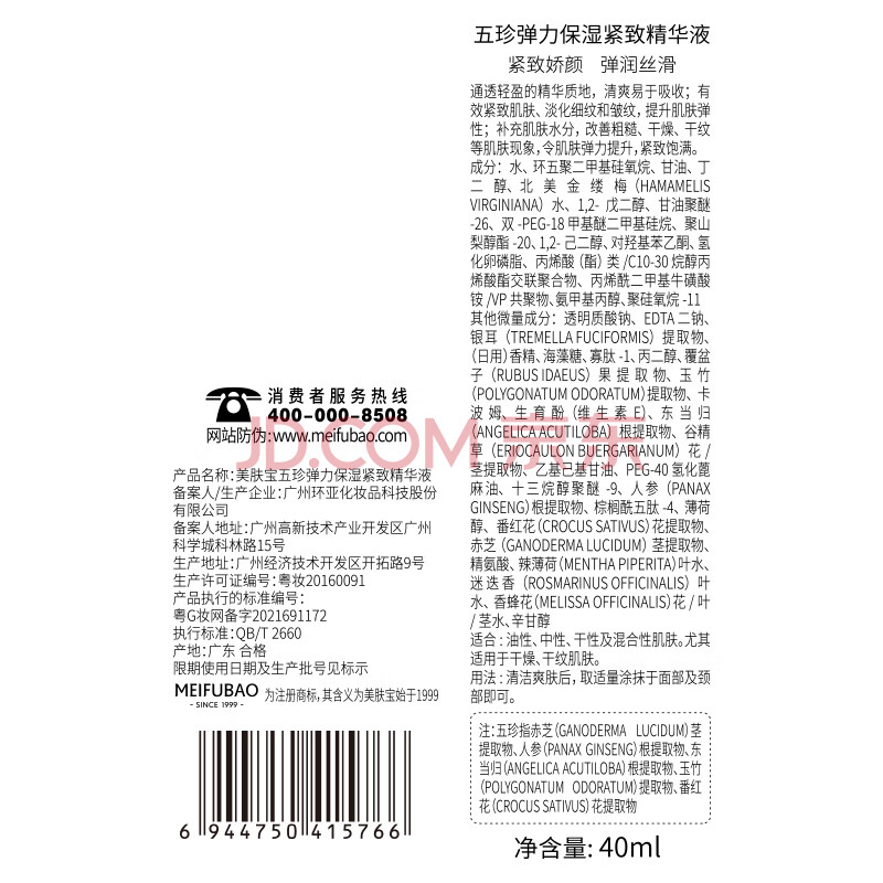 商品相册:美肤宝五珍弹力保湿紧致精华液40ml 淡纹提拉面部精华弹润护肤品女第