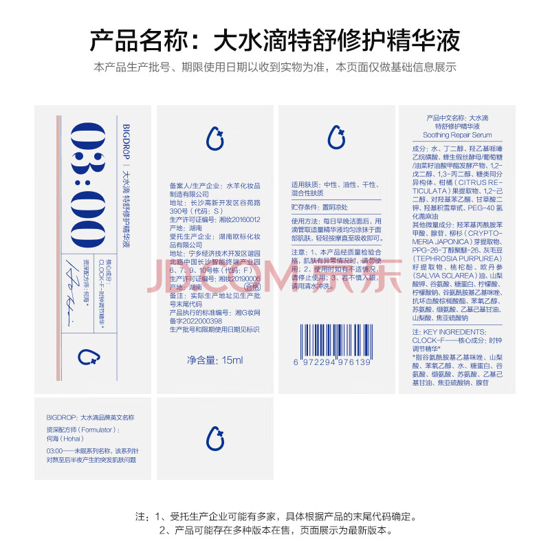 商品相册:大水滴熬夜精华15ml修护透亮祛痘闭口舒缓平滑细腻女神节礼物护肤品第