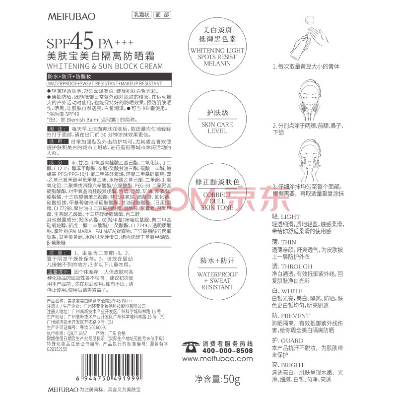 商品相册:美肤宝美白隔离防晒霜SPF45小粉管50g提亮户外防水防汗防晒乳通勤礼物第