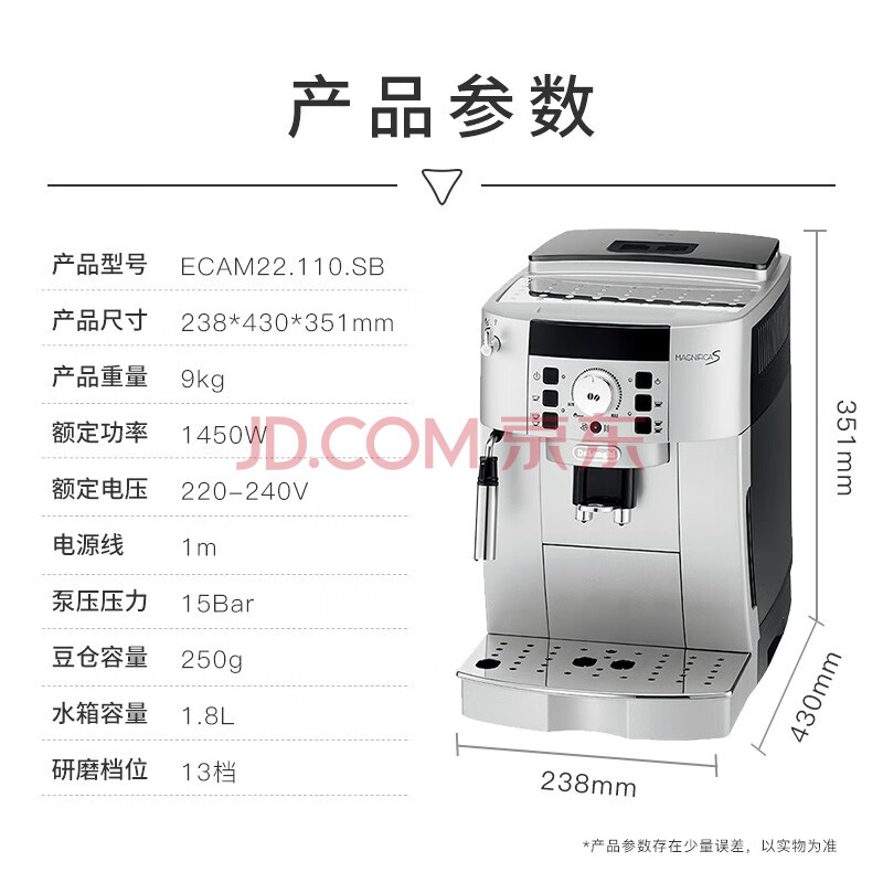 商品相册:德龙(Delonghi)咖啡机全自动研磨一体咖啡机家用小型咖啡机欧洲原装进口奶泡系统 ECAM22.110.SB第