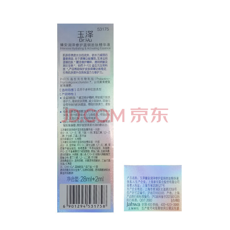 商品相册:玉泽(Dr.Yu)臻安润泽蓝铜胜肽精华液30ml(舒缓修护补水保湿)女神节礼物第