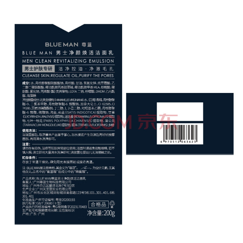 商品相册:尊蓝男士长效控油洗面奶除螨氨基酸护肤品男生专用洁面乳200g第
