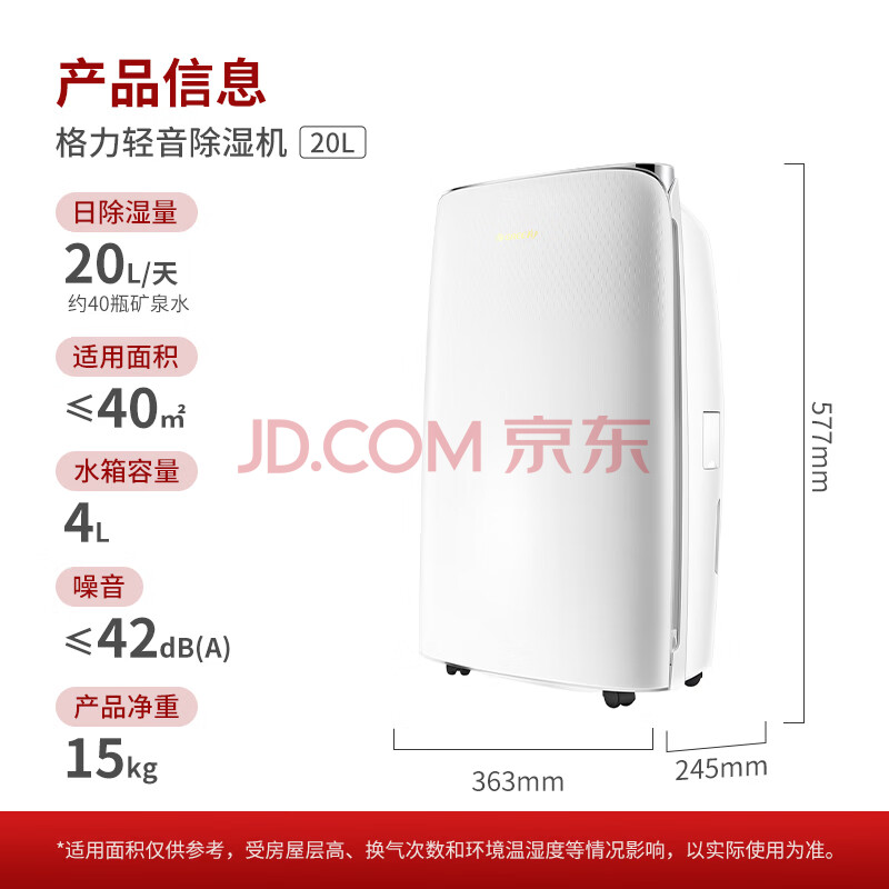 商品相册:格力(GREE)【干衣除湿】除湿机抽湿机家用20升/天单间≤40㎡低噪除潮回南天除霉干衣智能控湿24H定时DH20EF第