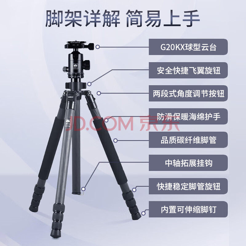 商品相册:思锐(SIRUI)三脚架 R2204+G20KX 碳纤维含云台尼康佳能单反相机三角架 单反相机三脚架 专业稳定 微单通用第