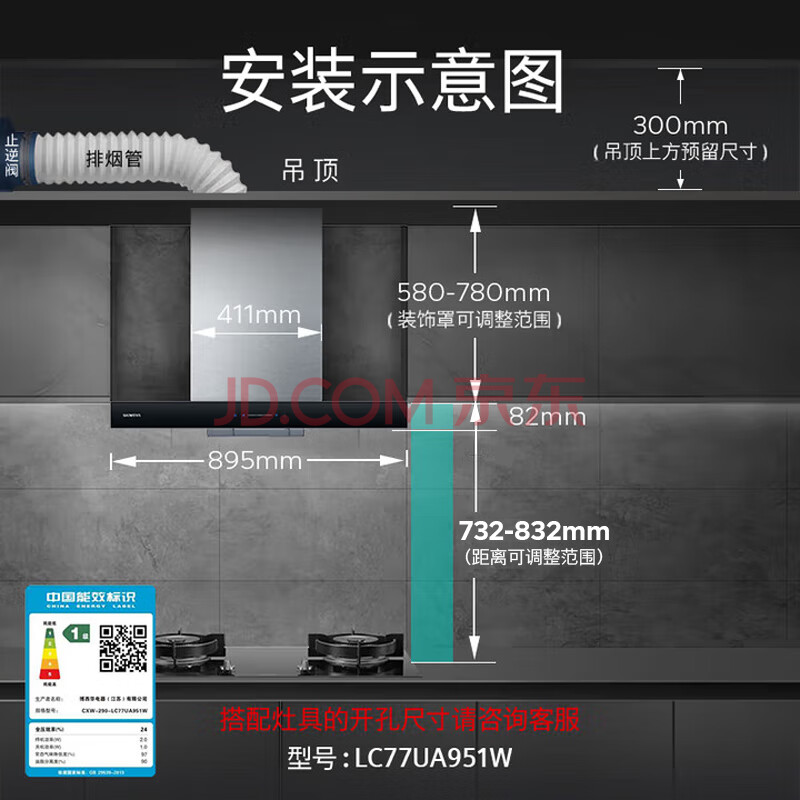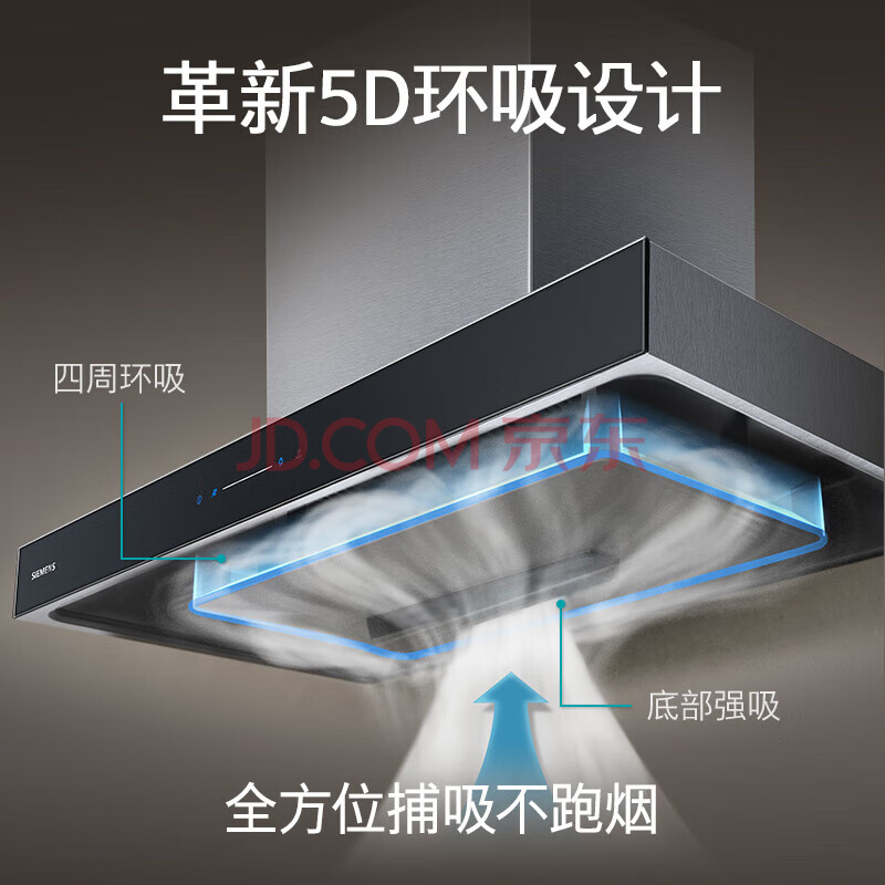 商品相册:西门子(SIEMENS)5D环吸抽油烟机灶具套装21.5m³/min欧式油烟机5.0kW燃气灶LC77UA951W烟灶套装第