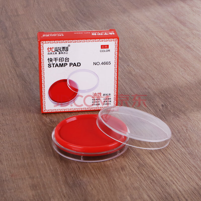 商品相册:优必利 财务会计专用快干圆形印台 透明外壳印泥 办公用品红色1个装 4665第1张/共4