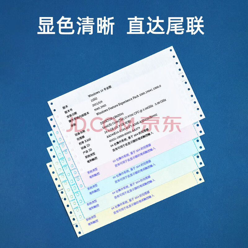 商品相册:Kingdee金蝶 三联二等分撕边电脑打印纸 彩色针式打印纸(241-3-1/2S 色序:白红黄 600页/箱)第