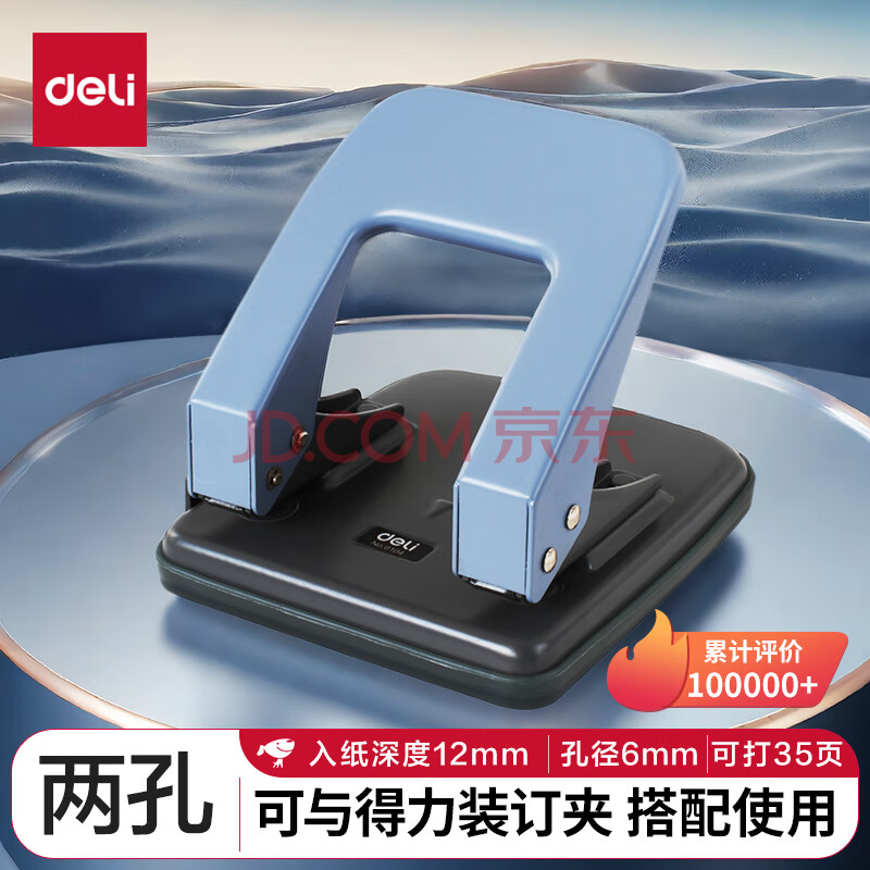 商品相册:得力(deli)【超级爆款】活页打孔器打孔机活页扣两孔全金属小型a4活页本凭证装订机装订夹条 颜色随机0104第