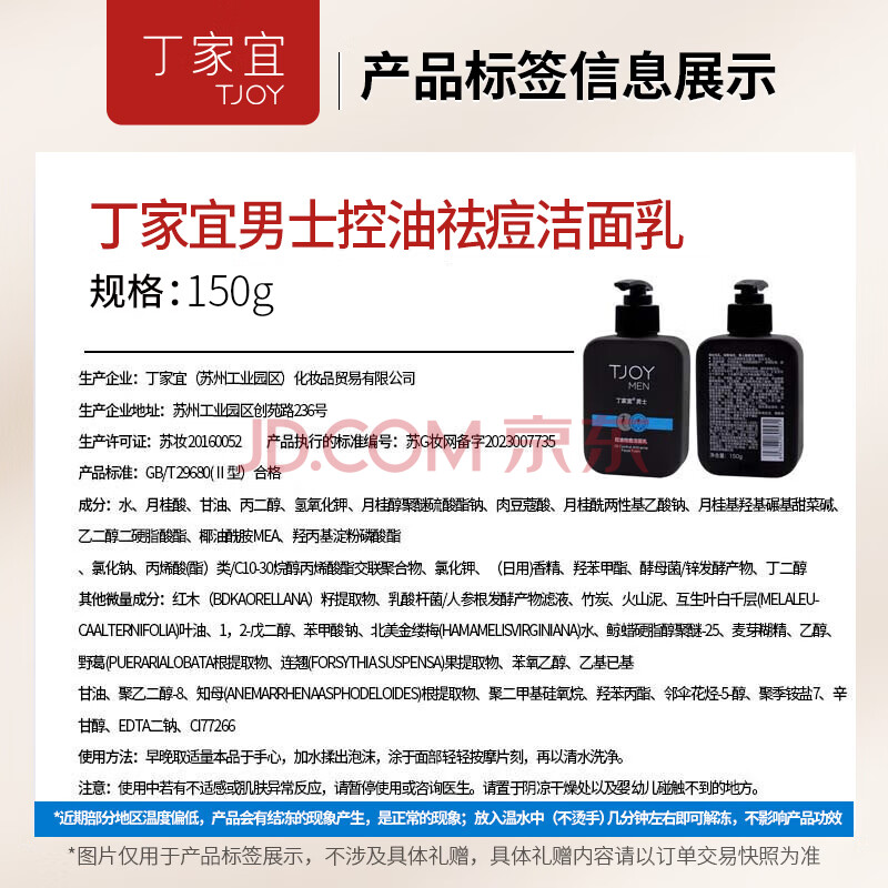 商品相册:丁家宜男士洗面奶控油祛痘去黑头学生青少年洁面乳膏150g(女士可用)第