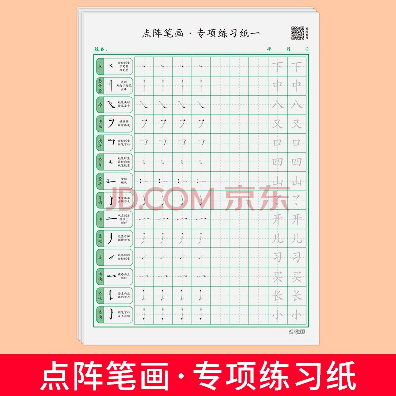 商品相册:绍泽文化 基础笔画专项练习纸小学生控笔训练字帖儿童硬笔书法偏旁笔顺入门字帖 点阵笔画(一+二+三) 60张第