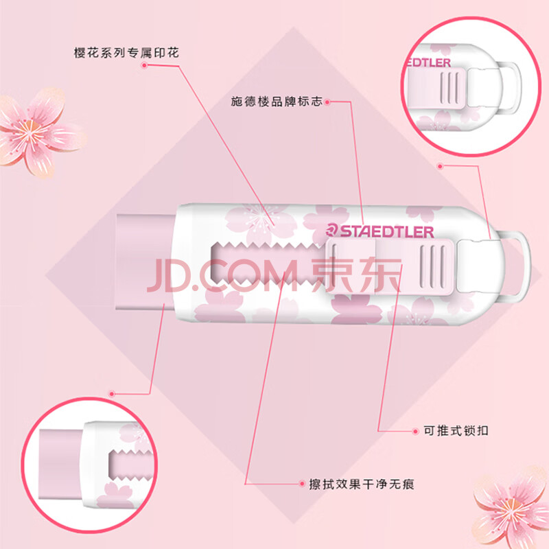 商品相册:施德楼(STAEDTLER)推拉橡皮擦 伸缩式可锁橡皮少屑干净小学生专用开学必备素描绘画办公用品-限定樱花粉第