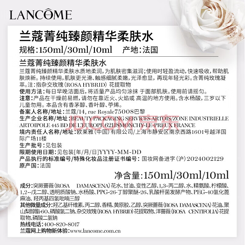 商品相册:兰蔻菁纯水150ml玫瑰精粹水精华水爽肤水护肤品礼盒送女友生日礼物第
