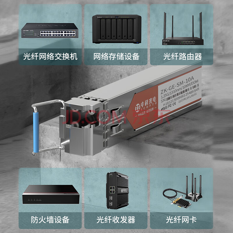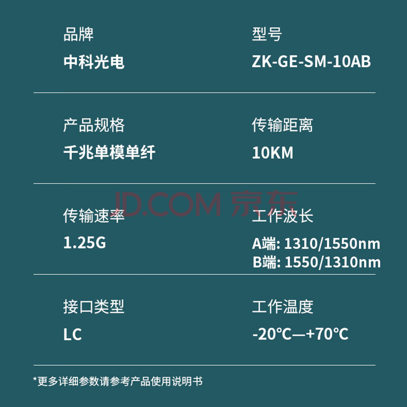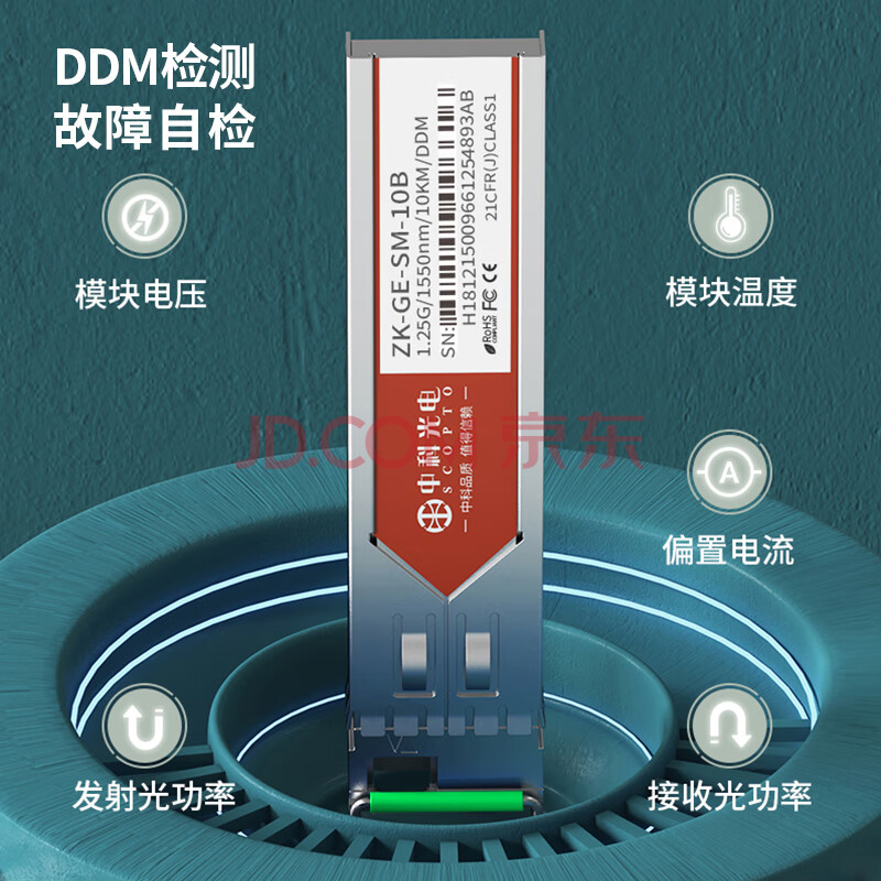 商品相册:中科光电 千兆光模块 SFP光模块 1.25G单模光模块 单模单纤 1310nm/1550nm,10KM,LC接口一对ZK-GE-SM-10AB第